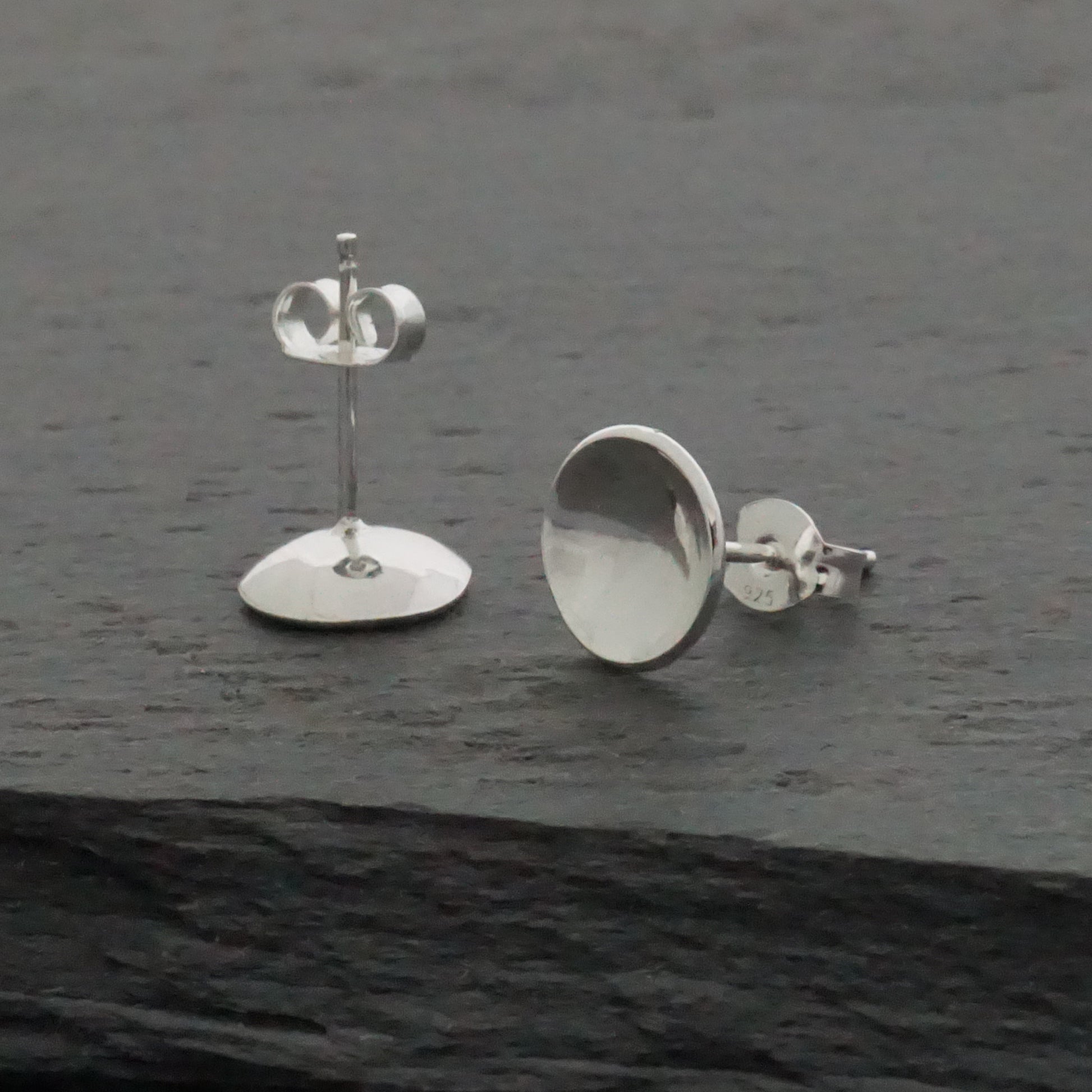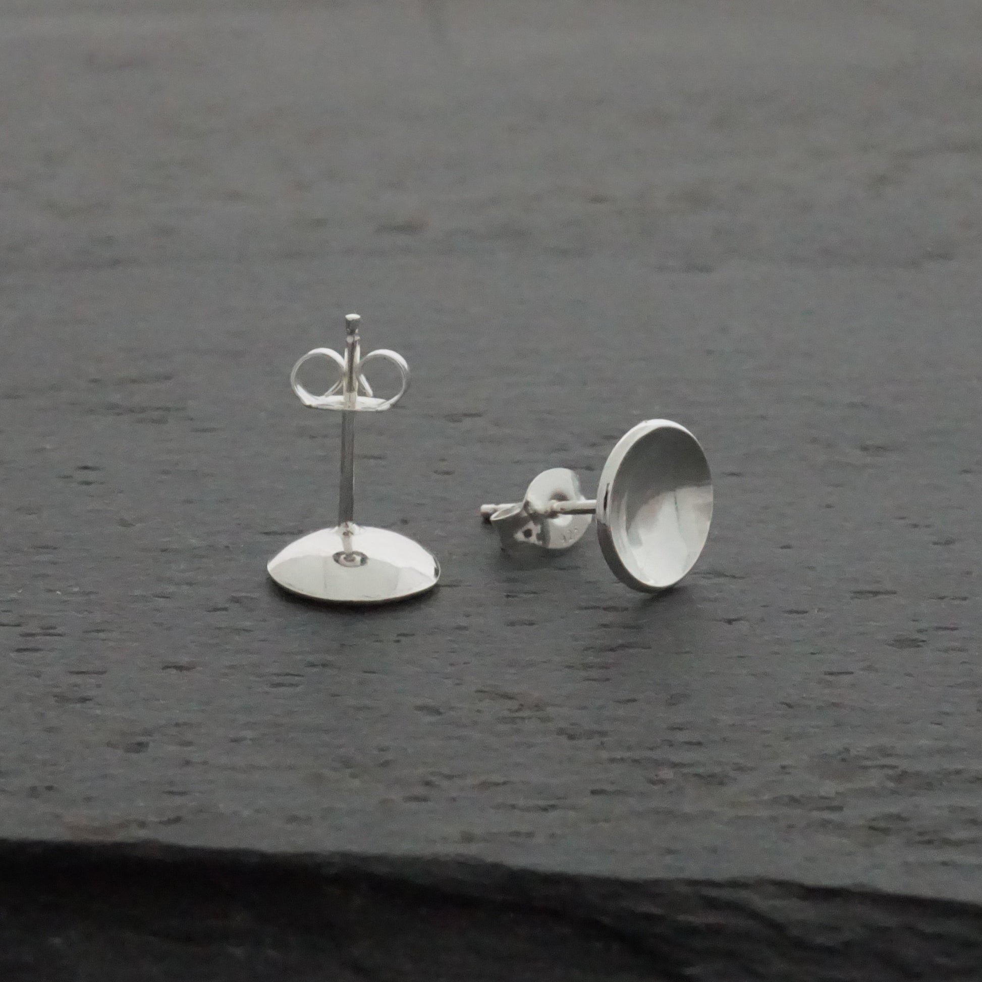 Small and dainty, these solid sterling silver convex domed studs reflect the light and give them much more presence than flat studs.