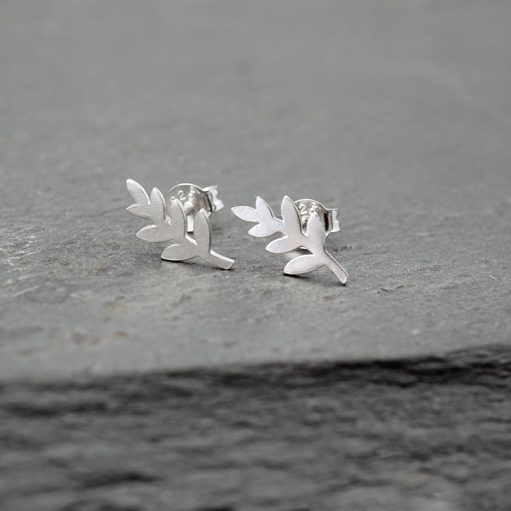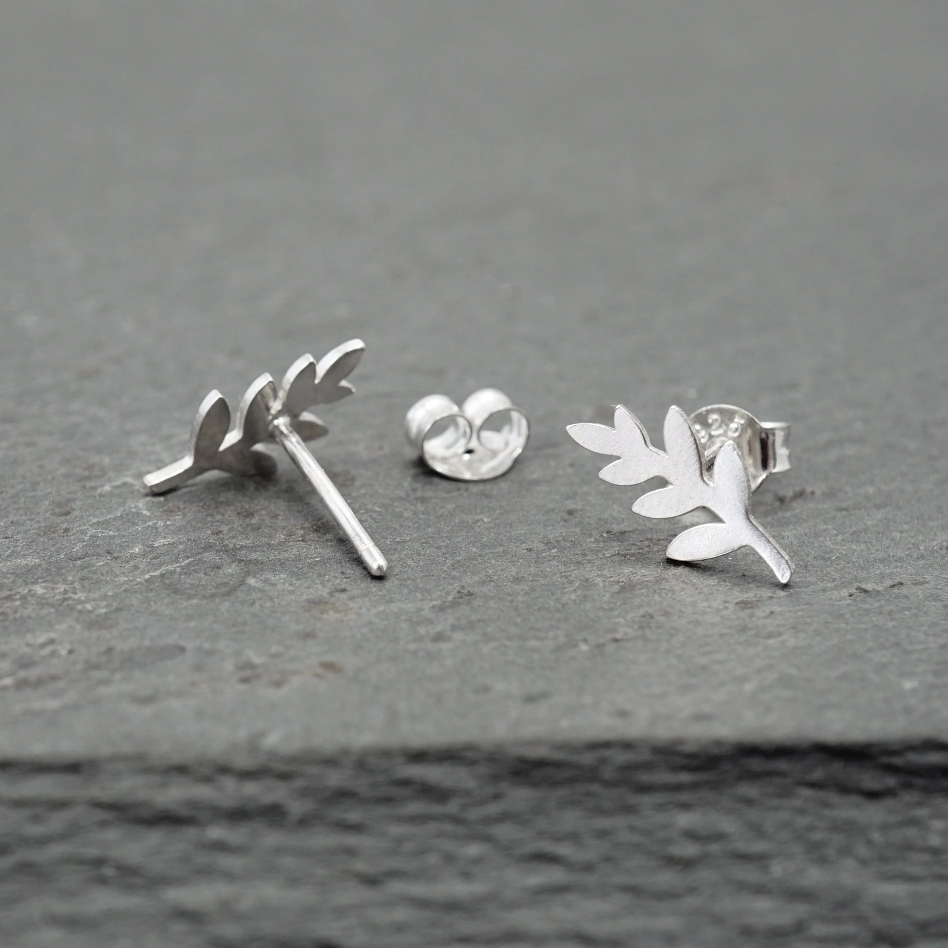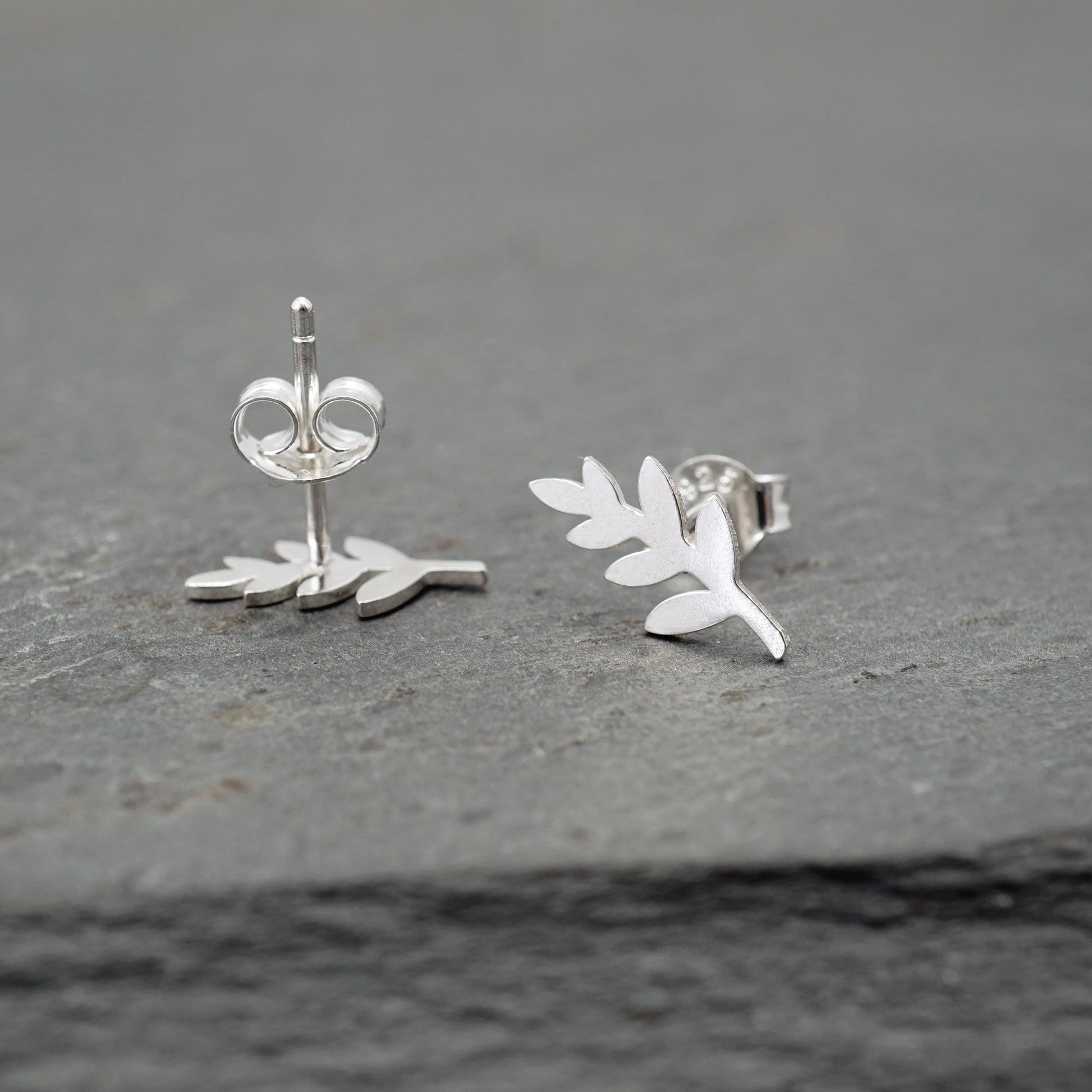 Cut of out solid sterling silver by hand, these tiny little fern studs are the perfect every day stud earring.