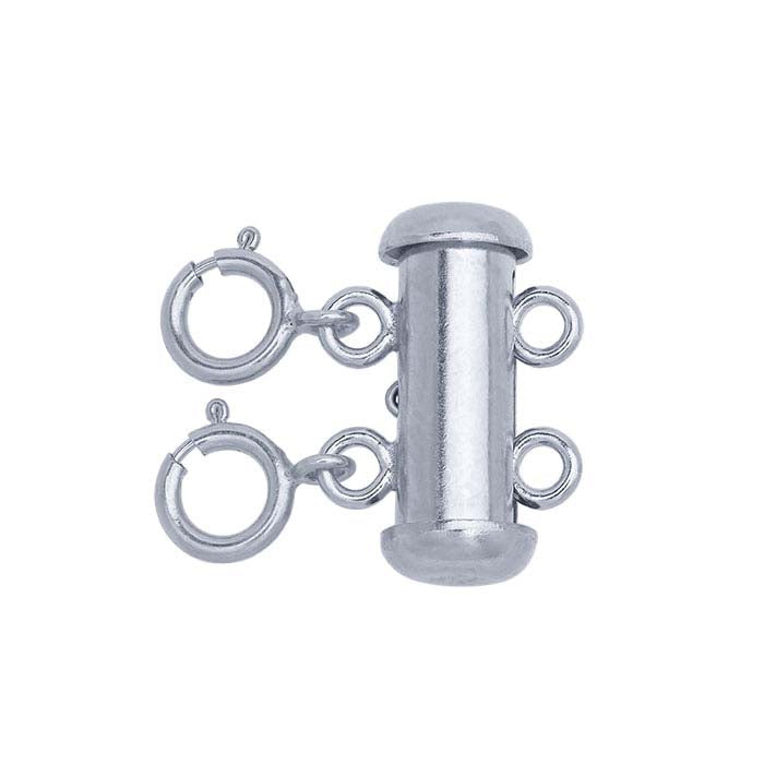 This sterling silver tube slide clasp makes it easy to create layered looks and switch them up. One side features two spring rings while the other features three jump rings, spaced to show off chains and necklaces without tangling. The tube clasp offers a strong, secure closure.