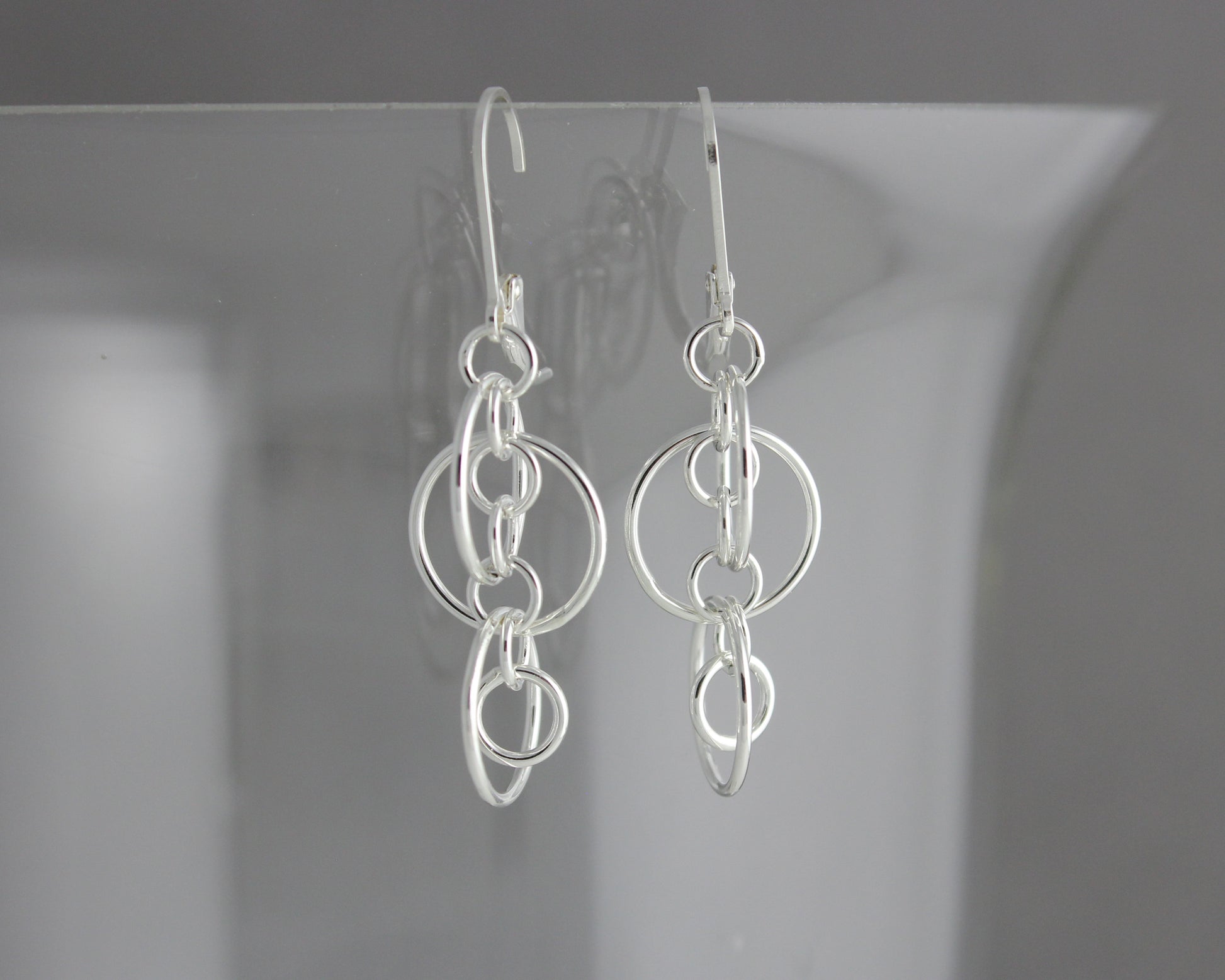 Solid sterling silver dangly hoop earrings. Comes on your choice of earring hook style.