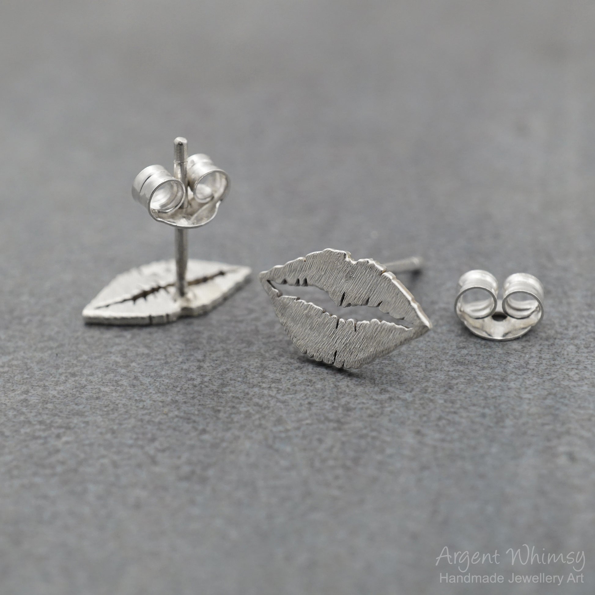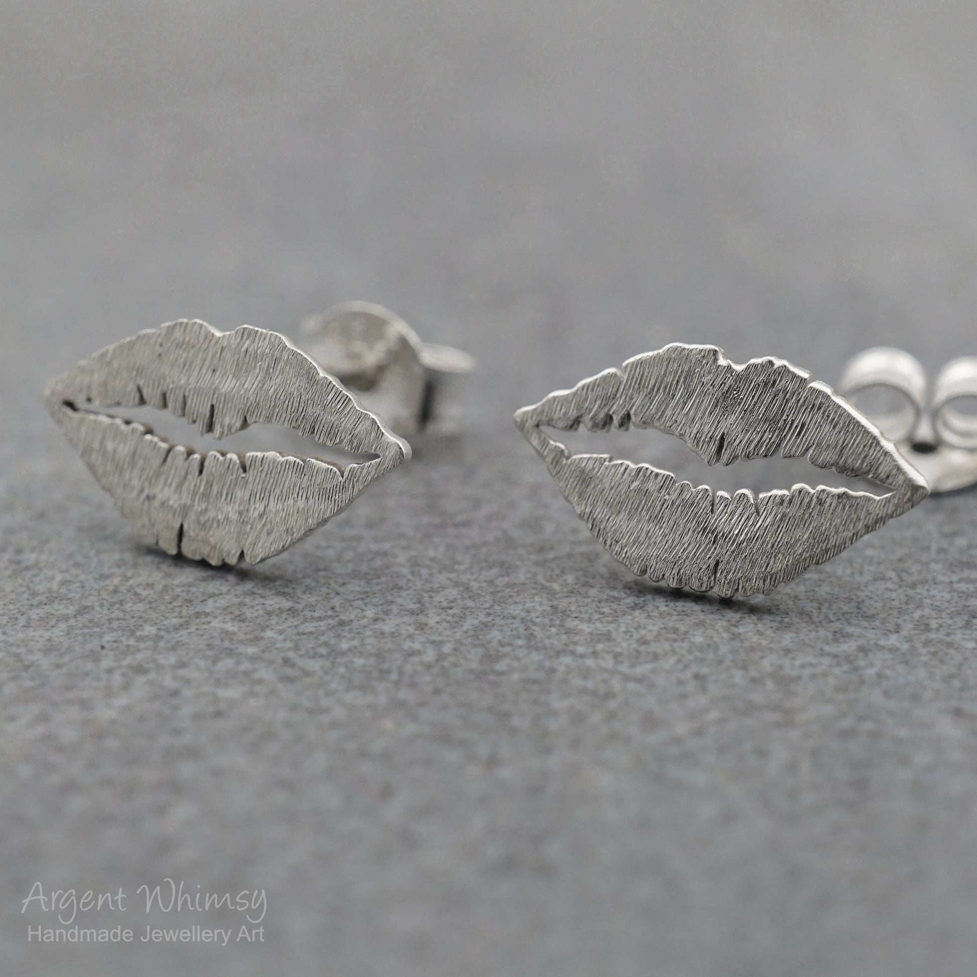 Small sterling silver "Stud Post" lip earrings with a sparkle-frost finish.